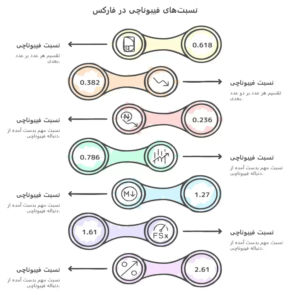 رشتهای از اعداد است که در آن اعداد غیر از دو عدد اول با محاسبه مجموع دو عدد قبلی ایجاد میشوند. به این عمل ابداعی فیبوناچی نسبت های فیبوناچی گفته میشود. این نسبتها در طبیعت و حتی اعضای بدن نیز وجود دارند ک نمایانگر اعتباری یکسری از اعداد فیبوناچی و نسبتهای آن است. ترتیب اعداد که فیبوناچی به آنها اشاره کرده است در بازارهای مالی و مخصوصا فارکس و ارز دیجیتال نیز به وفور وجود دارند.