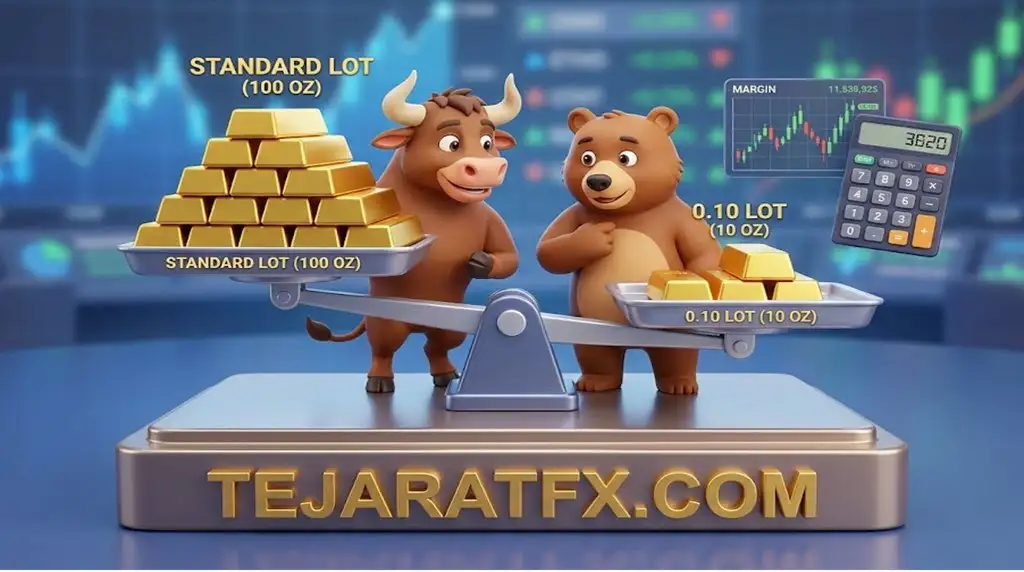 هر لات استاندارد طلا معادل ۱۰۰ انس است. به دلیل نوسانات بالای این نماد، استفاده از استاپلاس و مدیریت حجم الزامی است.