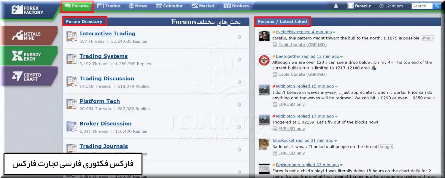 بخشهای اصلی سایت فارکس فکتوری forexfactory.com