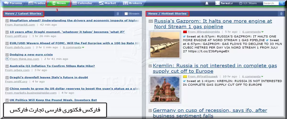 - بخش اخبار فارکس فکتوری که اخبار لحظه ای را پوشش میدهد.