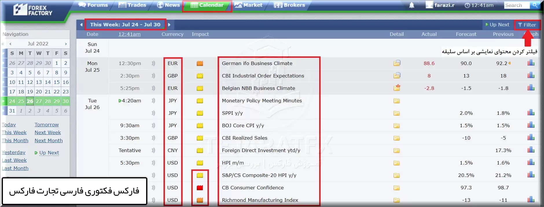 مقایسه تقویم فارکس با دید امکانات شخصیسازی و فیلترها