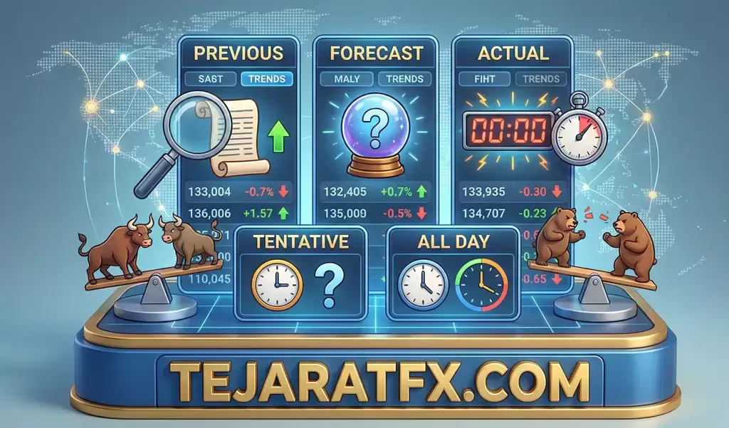 Actual، Forecast، Previous و گاهی در ستون زمان، برچسبهایی مثل Tentative یا All Day.