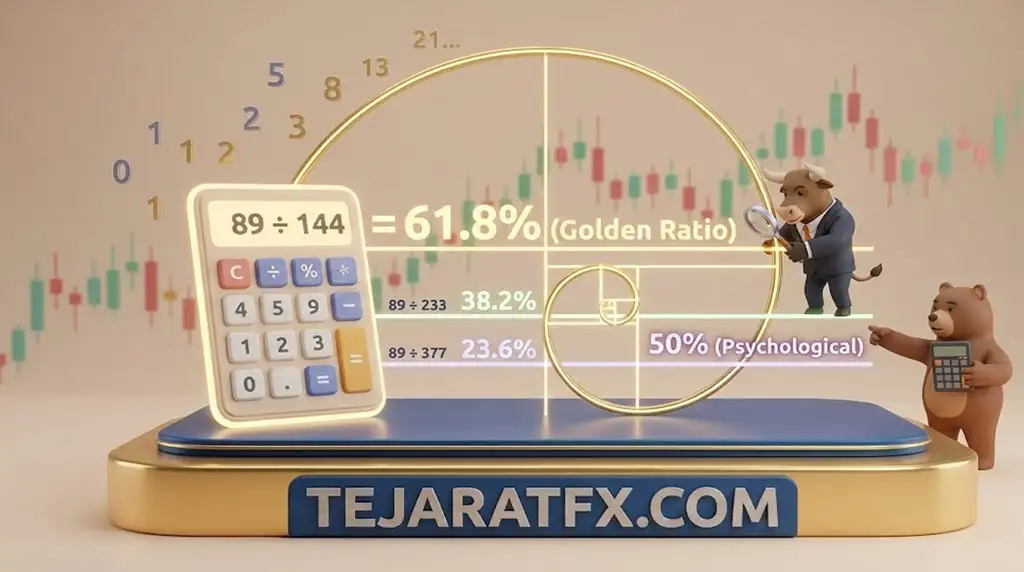 در ترید، ما مستقیماً از اعداد این دنباله استفاده نمیکنیم، بلکه از نسبتهای مشتق شده از آنها بهره میبریم. این نسبتها به ما سطوح کلیدی را نشان میدهند که قیمت پس از یک حرکت قوی، ممکن است تا آنجا اصلاح کرده و سپس روند اصلی خود را از سر بگیرد.