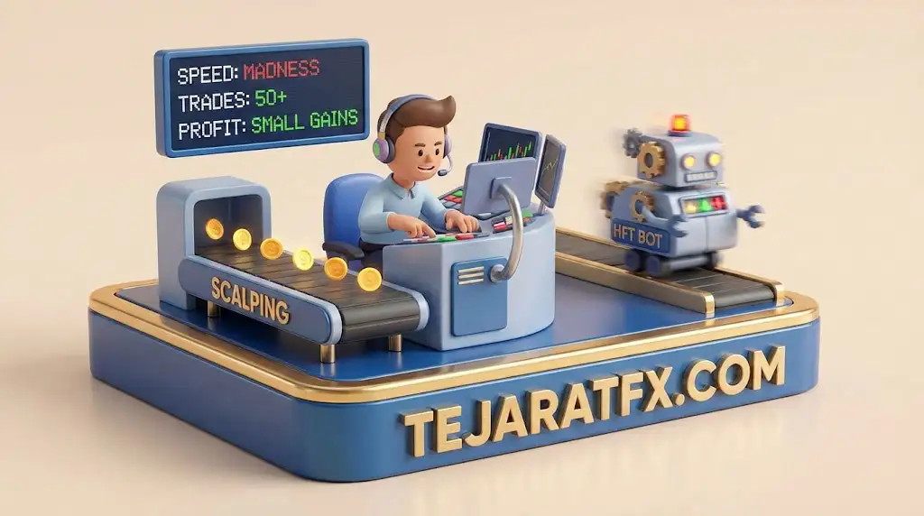 معاملات بسیار سریع در بازه چند ثانیه تا چند دقیقه با هدف کسب سودهای کوچک از نوسانات لحظهای.